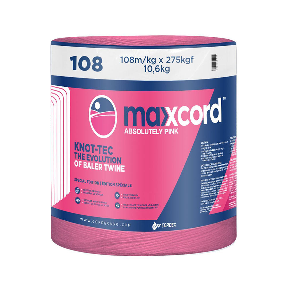 "MAXXCORD - The world's most advanced baler twine for high density balers is the result of a series of field trials on the latest generation of high density balers and co-development with one of the world's largest producers of biomass. Together with the Cordex Agri Knot-TEC- Technology offers Maxxcord the perfect combination of knotter preservation, superior durability, length and high visibility. In addiction you don't have to worry about size, the single weight spool fits all."
